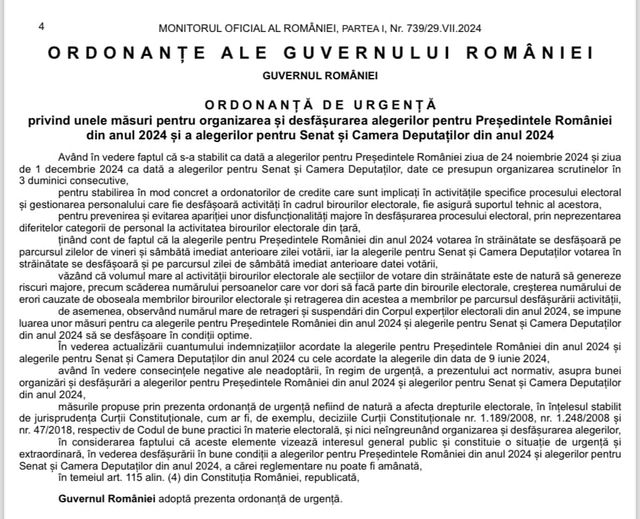 – 24 noiembrie primul tur al alegerilor prezidențiale,